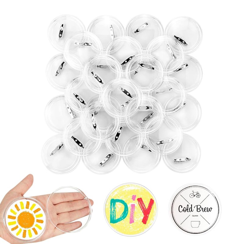 Acrylic Button Badge, 20pc Clear Badge Making Kit, 44mm