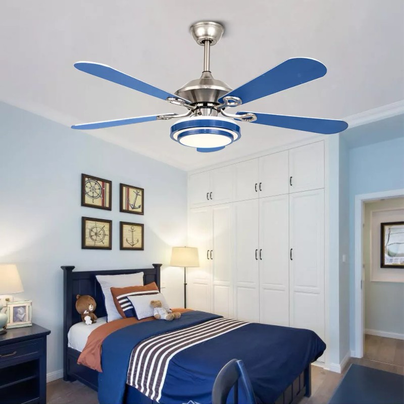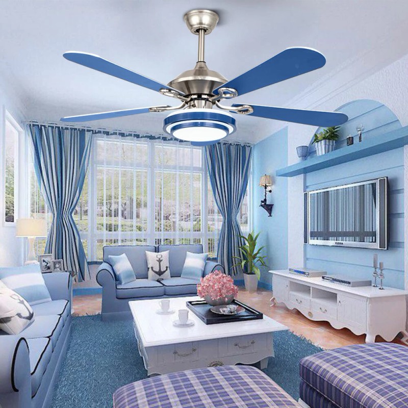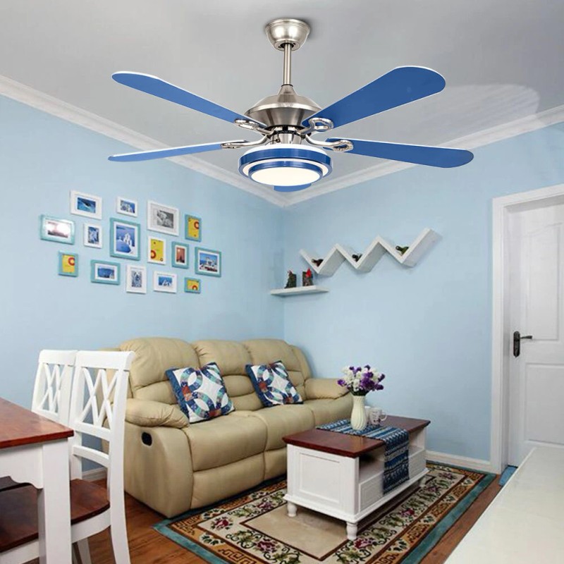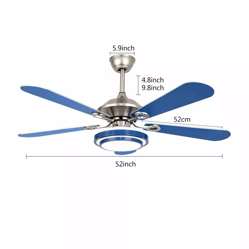 Acrylic Ceiling Fan Light Chandelier Lamp LED Dimmable 5-Blade With Remote Blue