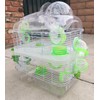 - Two front doors. Comes with one water bottle and Complete Food dishes and exercise wheels for each level