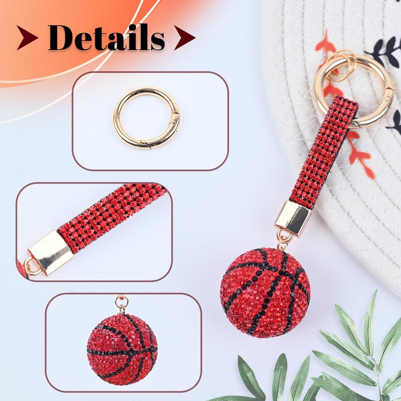 Acrylic Diamond Basketball Keychain with Fashion Shiny Rhinestones Sparkling Sports Ball Key Ring for Backpack/Car/Purse, Basketball Gift(red)