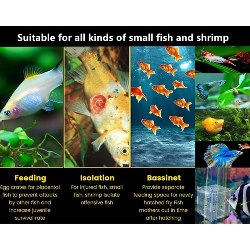 - 【Unique Design】Unique floating and transparent acrylic cover designed,flexible and convenient,not only can it prevent juvenile fish from being attacked by adult fish and improve their survival rate,but it is also an ideal choice for isolating sick and pregnant fish etc.