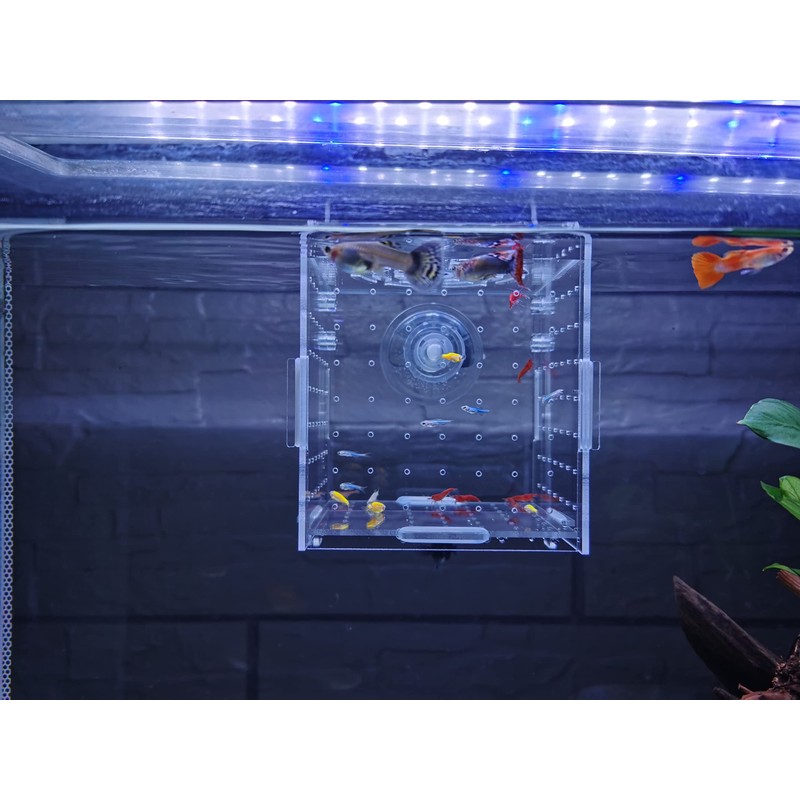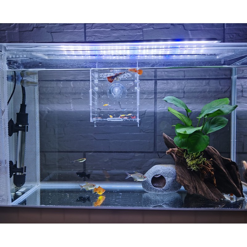 - design:the breeding box for fish tank have Unique floating transparent acrylic cover design prevents fish from getting out of the isolation chamber and protects newborn fish.It can prevent the attack of adult fish and improve the survival rate of juvenile fish.