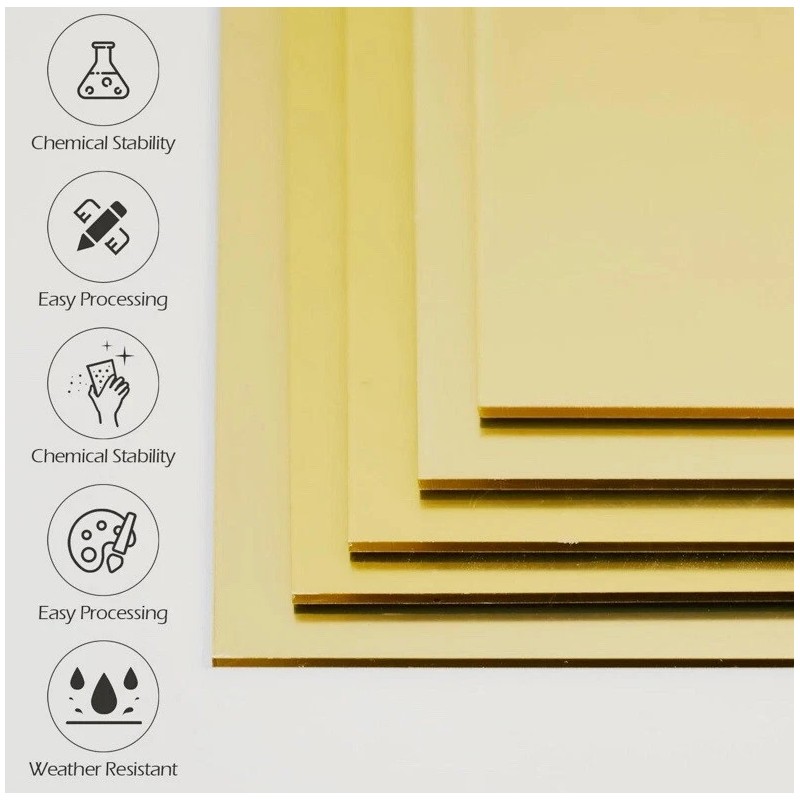 Acrylic Mirror Acrylic Gold Plexiglass 1/8" x 12" x 24” Plastic Sheet - Pack 5