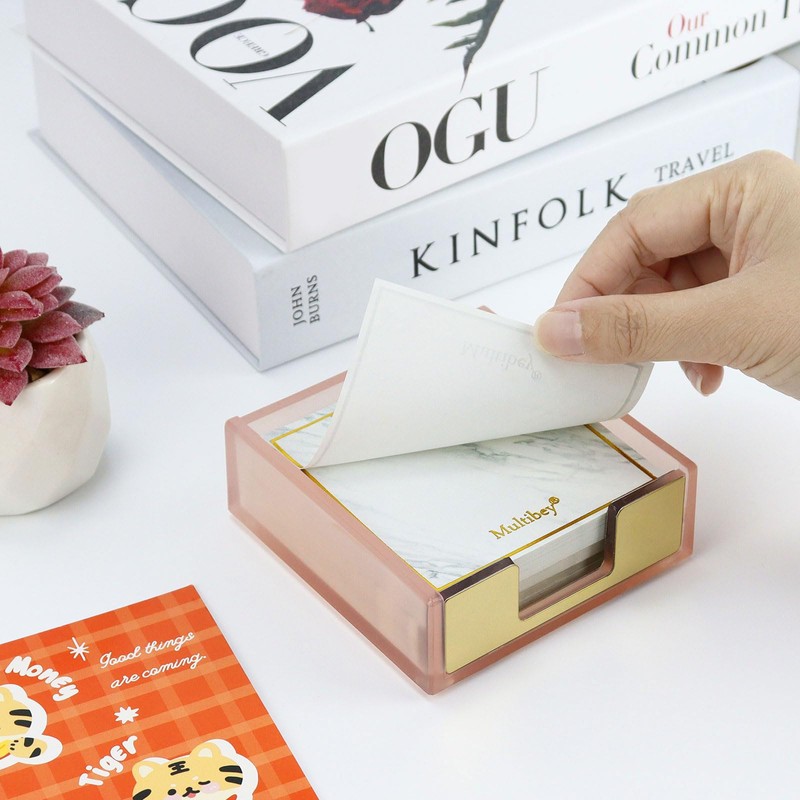 - Suitable Size: The acrylic sticky note holder measures 3.9 x 3.7 x 1.3 inches, which is suitable for most of the sticky notes, and the suitable size won't take up too much of your desktop space.