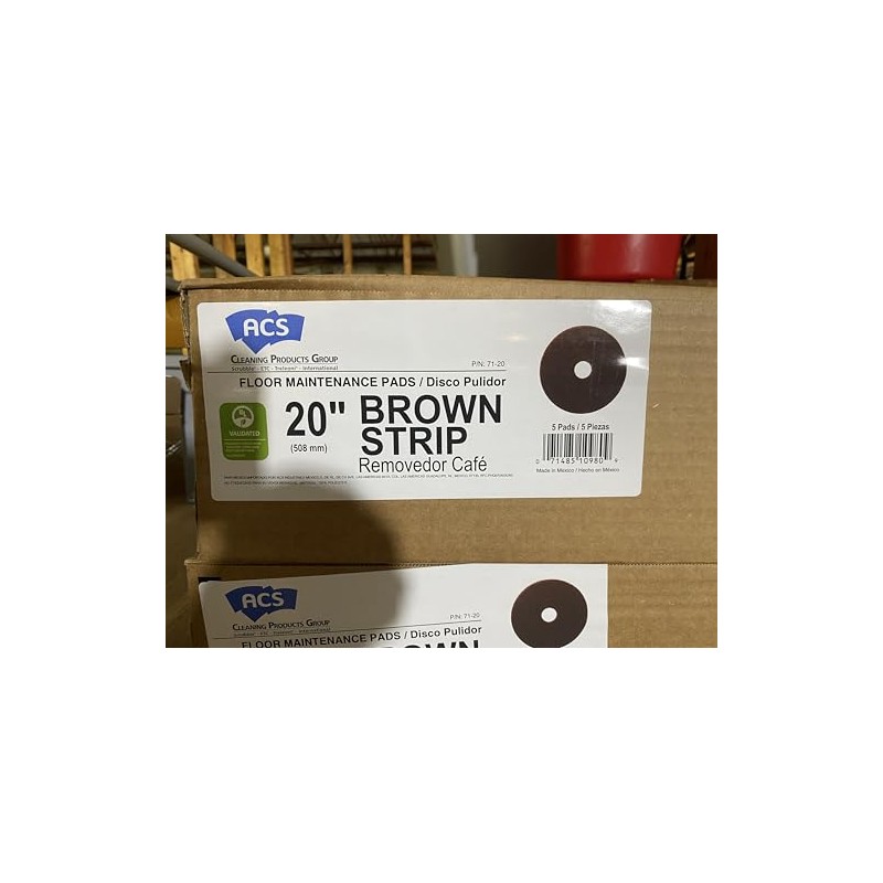 ACS Brown Strip Floor Maintenance Pads, 20 Inch Diameter, 5 Pack