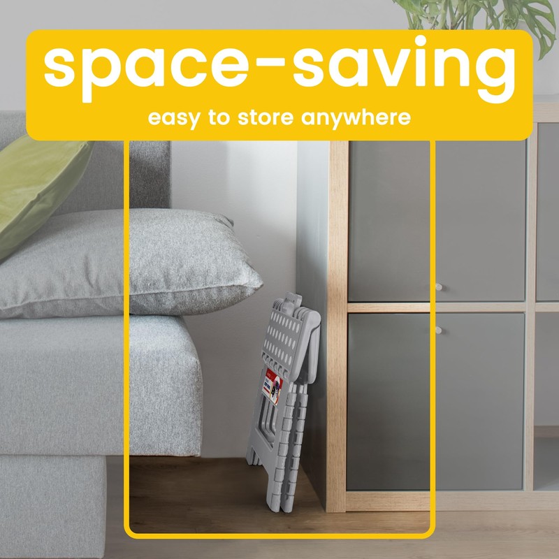 - Corner Protection & Anti Slip: Professional safety rounded edge protection prevents children and the elderly from being injured in the event of a collision. Our folding stool has non-slip black rubber straps on all four feet for superb grip and to prevent slipping. So it is a perfect companion in the bathroom and kitchen.