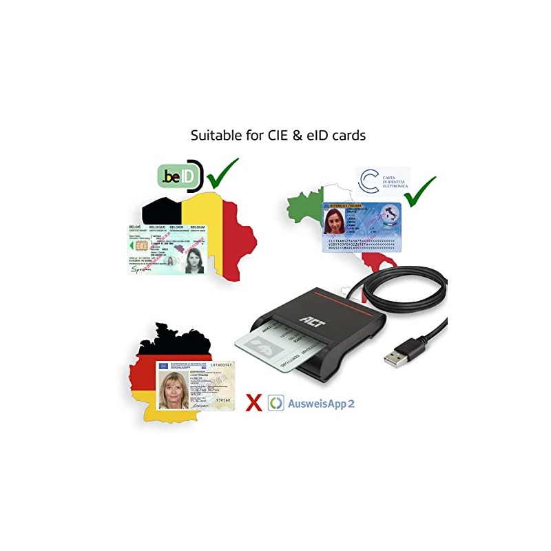 ACT eID Card Reader Belgium, USB Smart Card Reader, Not for ID App 2, Power LED Status - AC6015
