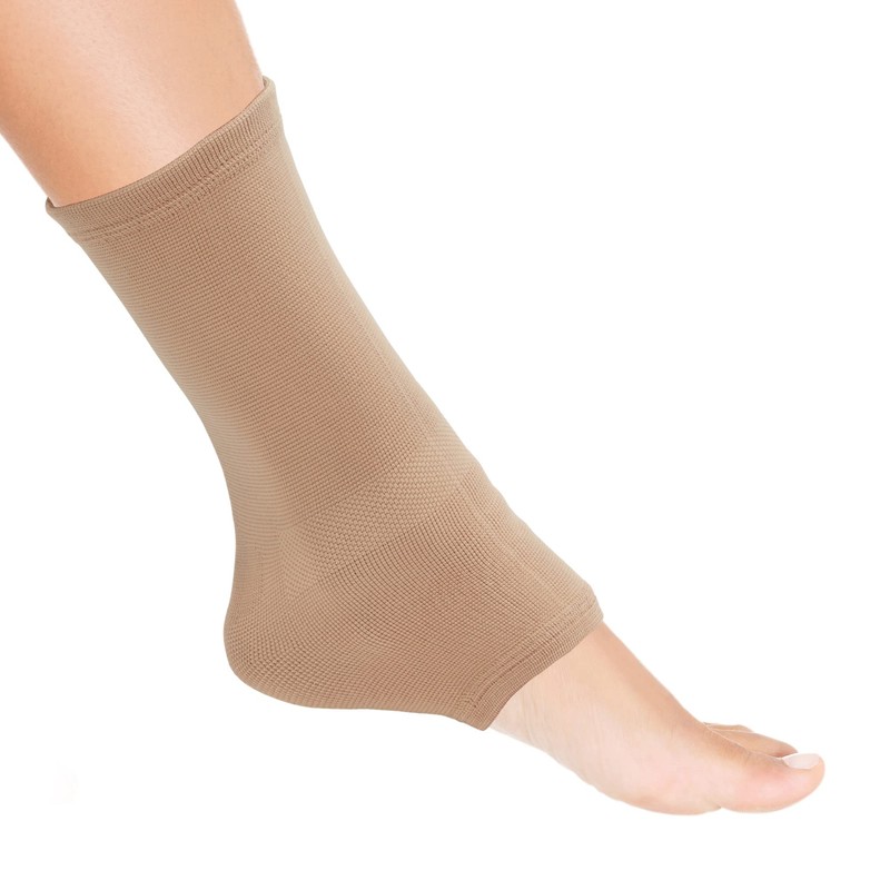 Actesso Elasticated Ankle Support Sleeve - Pain relief and stabilisation for weak or Injured ankles. Black or Beige & left or right use (Beige, Medium)