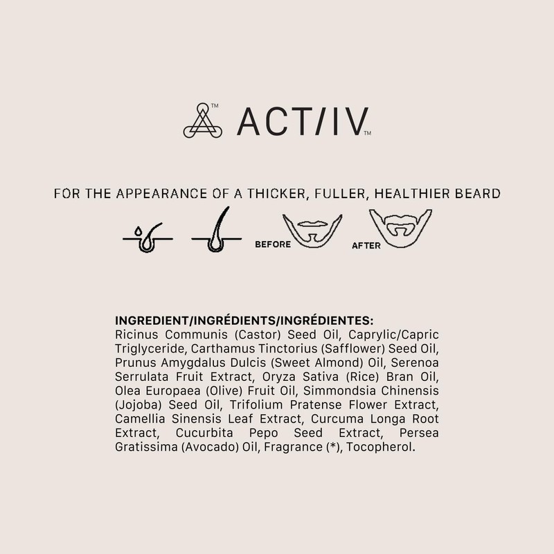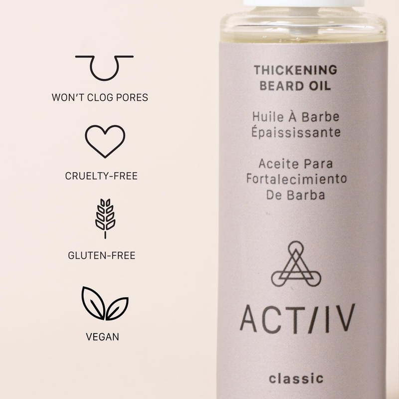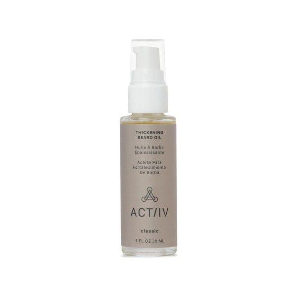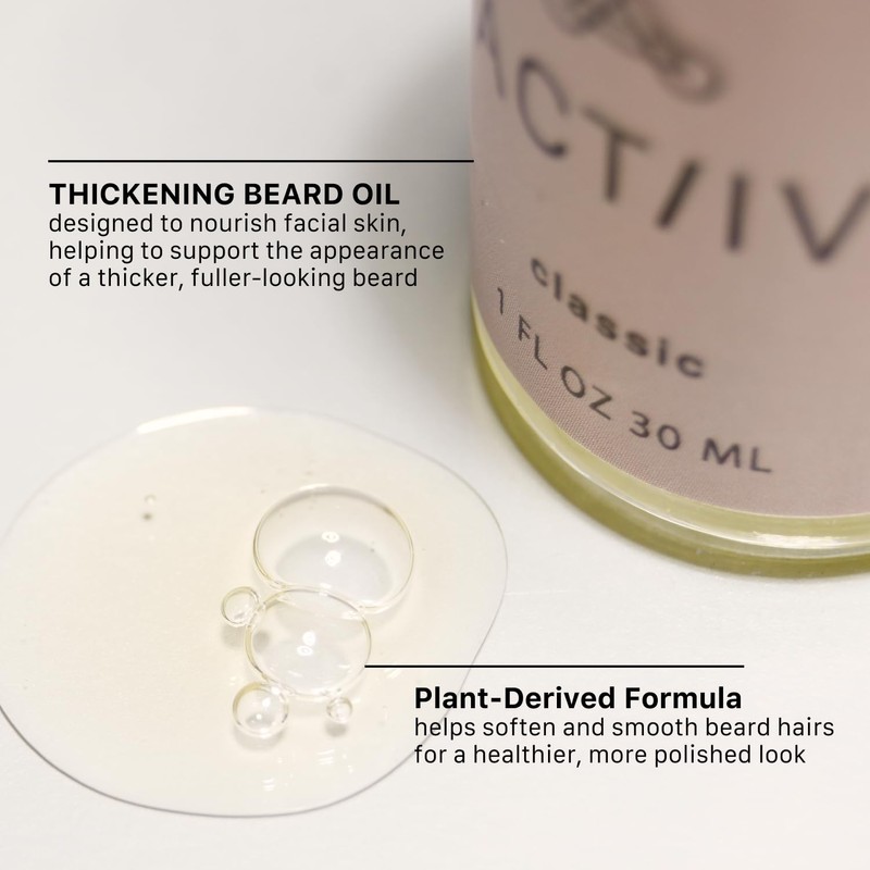 ACTIIV Thickening Beard Oil (Classic Scent) | Promotes Thicker Fuller Beard Growth, Nourishes & Softens Facial Hair, Lightweight Non-Greasy Formula, Vegan, Plant-Based, All Beard Types, 30 mL / 1 oz