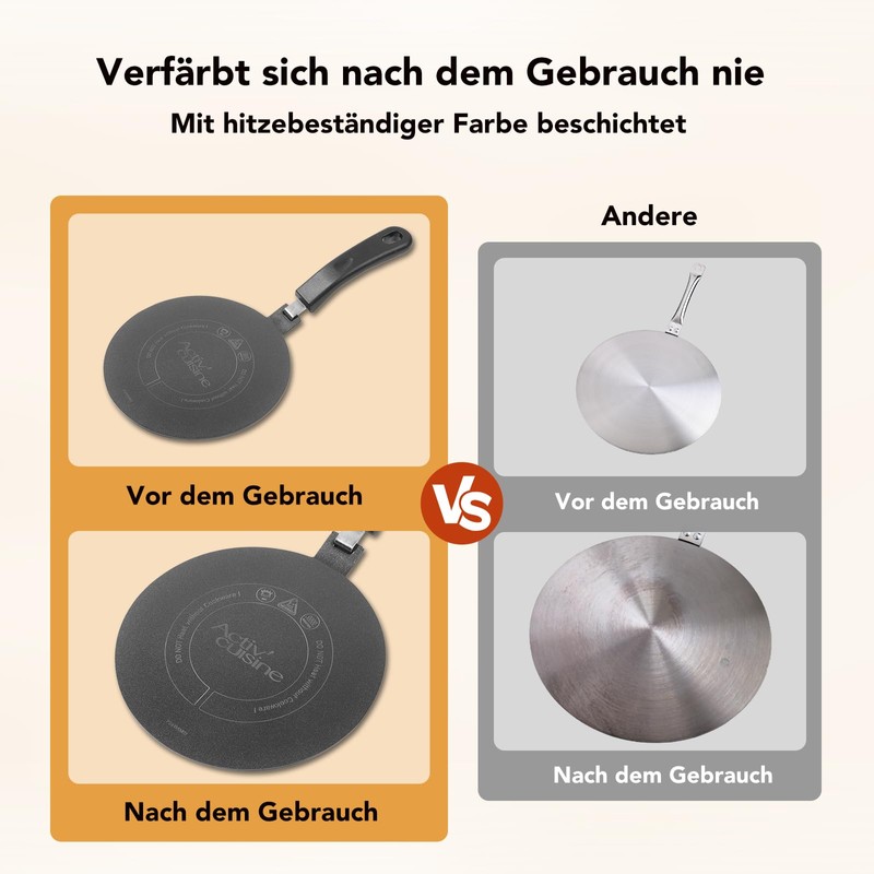 - Practical kitchen accessories: the induction adapter plate protects your stove from dirt or damage caused by spilled food. It also protects your beautiful pots from discolouration caused by open flames