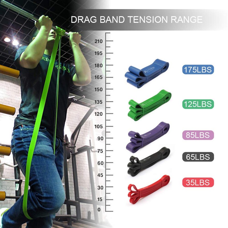 - 【Durable】Make gym time your time by picking the perfect resistance band for you. Our durable pull up band are made from premium grade latex rubber and come in resistances ranging from 35 to 175 pounds. The extensive range of pull up band is designed to meet your specific resistance workout needs from simple leg and ankle stretching exercises to pull ups to pilates and even warm up exercises for ballet. Find the resistance bands that’s right for you by referring to the photo chart in the images.