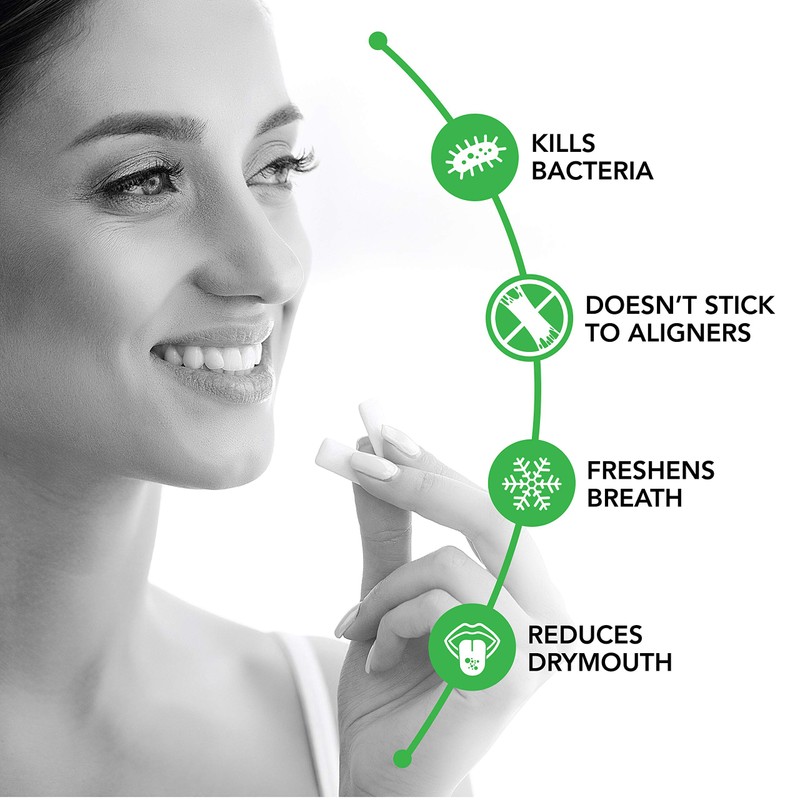 - Non-stick to clear aligners or braces