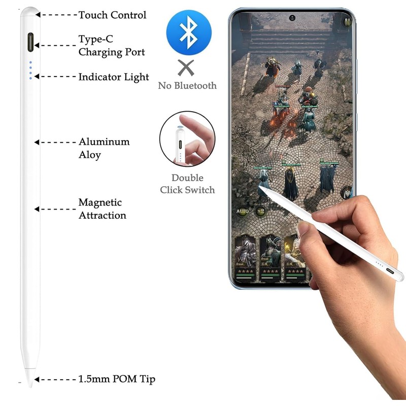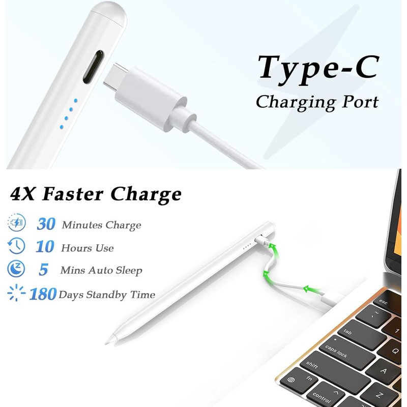 • 【Faster Charge & LED Power Indicator】 with USB-C charging port and 130mah built-in battery, it only takes 30 minutes to fully charge and work for 10 hours continuously. Automatically turn off after being idle for 10 minutes. 3 indicators design can clearly see power of the stylus pen, timely charge, and avoid automatic shutdown due to lack of power during use. No bluetooth needed.
