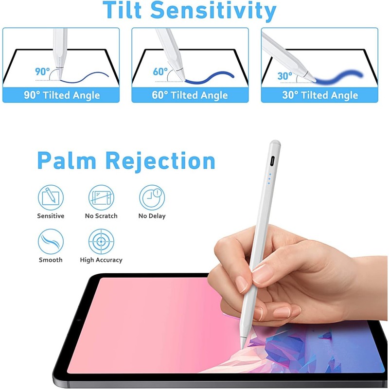 • 【Tilt Sensitivity &Touch Activated】 Professional Sketching stylus for ipad, just tilt to adjust line thickness, perfect for sketching, drawing and marking. The tilt technology makes your writing and drawing more freedom than ever. Easy to use, double tap the top of the stylus pencil to turn on/off.