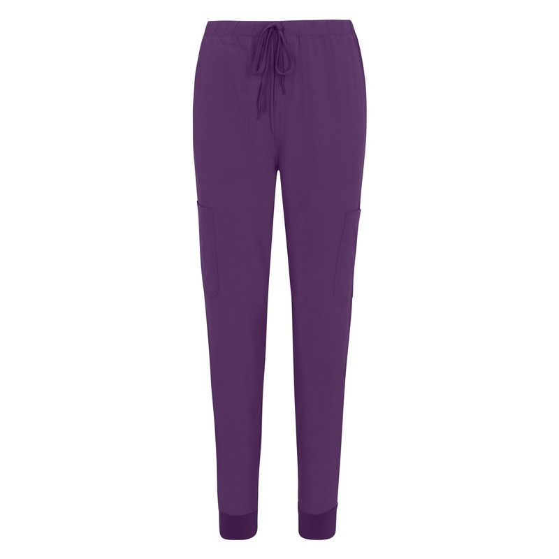 ACTIVE UNIFORMS Women's Essential Scrub Set Cool Stretch Jogger Scrub Top and Pant Nursing Uniform Clearance Workwear (Eggplant, Small)