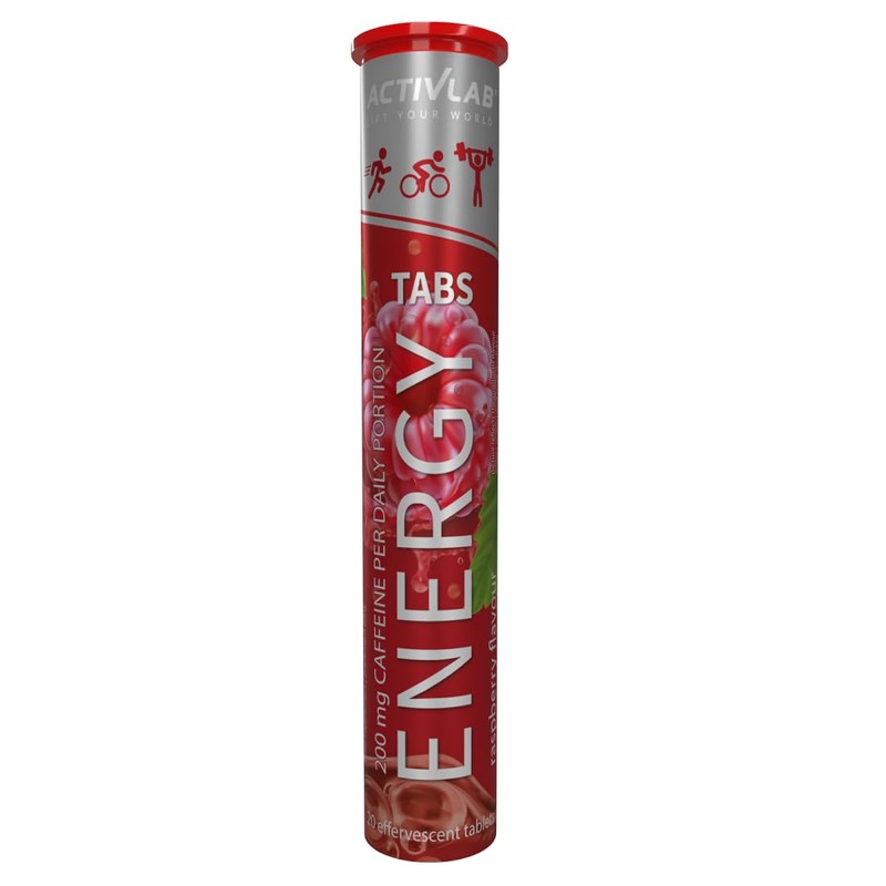 Activlab Energy Tabs 20 Effervescent Tablets, Raspberry Flavour, 200 mg Caffeine, B Vitamins