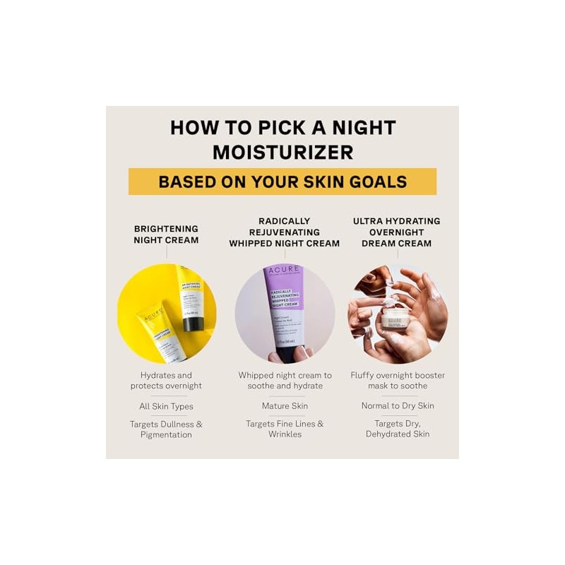 Acure, Crema nocturna para atenuar arrugas con multi peptidos, vitamina C y glicoproteinas, 50 ml