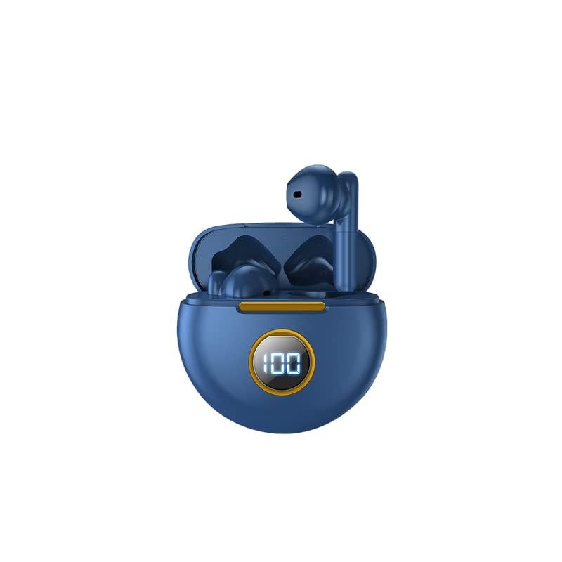 Acuvar in-Ear Wireless 5.1 Headphones, Earbuds IPX7 Waterproof with Microphone Rechargeable USB C Case with Round LCD Display for Smartphones Android iOS (Blue)