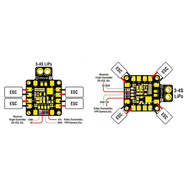 Acxico 2 pcs Drone Power Distribution Board XT60 3-4S 9-18V 5V 12V Output PDB