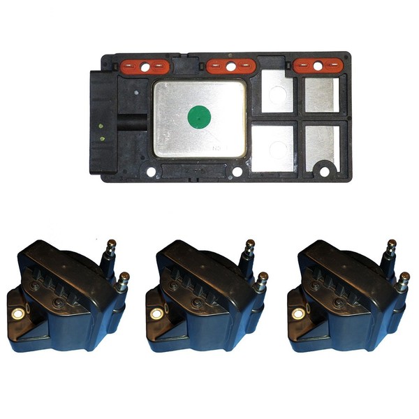 AD Auto Parts Coil Pack - Herko LX348 Ignition Control Module + 3 Herko B005 Ignition Coils