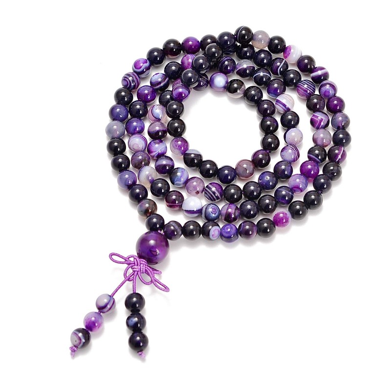 AD Beads Natural Gemstones Buddhist 108 Prayer Healing Beads Mala Stretchy Bracelet Necklace 6mm (Purple Stripe Agate)
