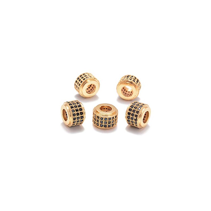 AD Beads Zircon Pave Rhinestones big hole Rondelle Spacer Beads 6x7mm 5Pcs Black on Gold