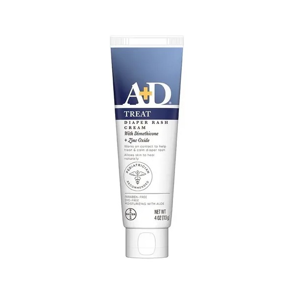 Trata y previene las rozaduras: use la crema para el tratamiento del sarpullido con óxido de zinc A+D para las erupciones del pañal existentes y para prevenir la recurrencia del sarpullido con frecuentes cambios de pañal y la aplicación continua de pomada original A+D.