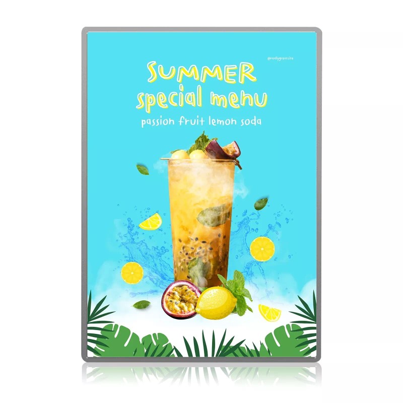 - Boost your ads or other promotional materialsโ visibility by displaying them our illuminated posters frame.ย