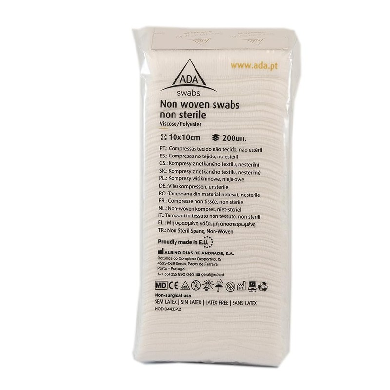 ADA swabs - Non-sterile gauze bandage - 10 x 10 cm - pack of 200 - 100% hydrophilic cotton for babies - non-woven fabric made of TNT