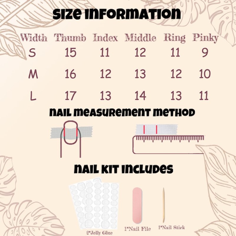 - Package include 10 Pcs False Nails, 1 durability of jelly glue, 1 Wood and 1 Nail File.