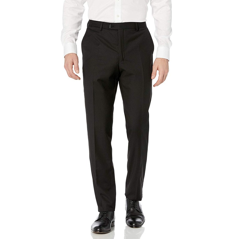 - Pants: Flat front, Zip Fly with Hook-and-Button Closure, Solid (NO Satin Side Stripe), button-through back pockets, Unfinished hem so you can tailor them to your exact measurements, However once hemmed, cannot be returned. Bowtie Included