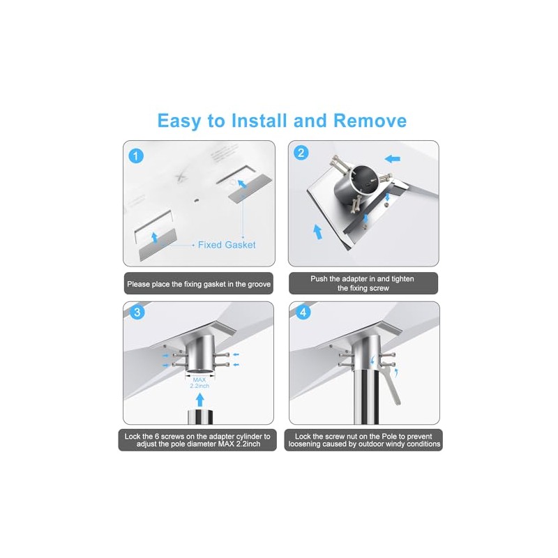 - Fácil instalación: retira el soporte Starlink Gen3 y coloca el adaptador de tubo Migkin Starlink Gen3, coloca la junta en la ranura de la antena y aprieta los tornillos.