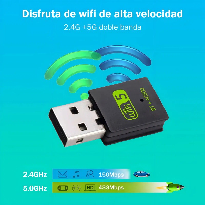 Chip integrado RTL8821CU, IEEE802.11 A / B / G / N / AC. 5.8 GHz ofrece velocidades de hasta 433 Mbps y 2.4 GHz hasta 150 Mbps, adecuadas para streaming de vídeo de alta definición y juegos en línea, además de uso normal como navegación web y música.