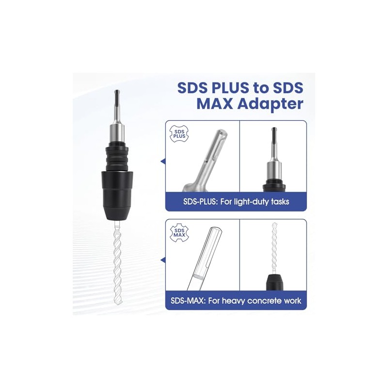 - Flexibilidad mejorada: logra el equilibrio perfecto entre alcance y control con este adaptador SDS Plus a SDS Max con 8-1/4 pulgadas de longitud. Con una amplia compatibilidad, amplía la funcionalidad de tu taladro de martillo, reduce la necesidad de múltiples herramientas y asegúrate de que tu juego de brocas pueda manejar una gama más amplia de trabajos con un solo adaptador.