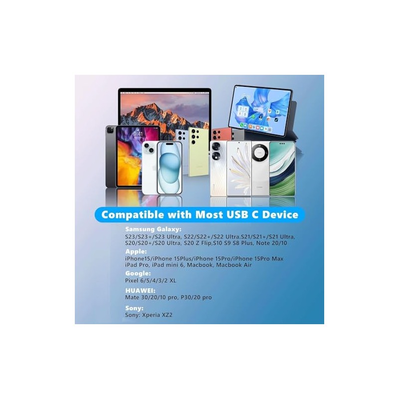 Dispositivos compatibles | Compatible con iPhone 16/16 Plus/16 Pro/16 Pro Max/iPhone 15/15 Pro/15 Plus/15 Pro Max, Galaxy S23/S23+/S23 Ultra/S22/S21/S20/Note 20/Note10, Pixel 7/6/5/4/3/2 XL, iPad Pro y masCompatible con iPhone 16/16 Plus/16 Pro/16 Pro Max/iPhone 15/15 Pro/15 Plus/15 Pro Max, Galaxy S23/S23+/S23 Ultra/S22/S21/S20/Note 20/Note10, Pixel 7/6/5/4/3/2 XL, iP… Ver más |