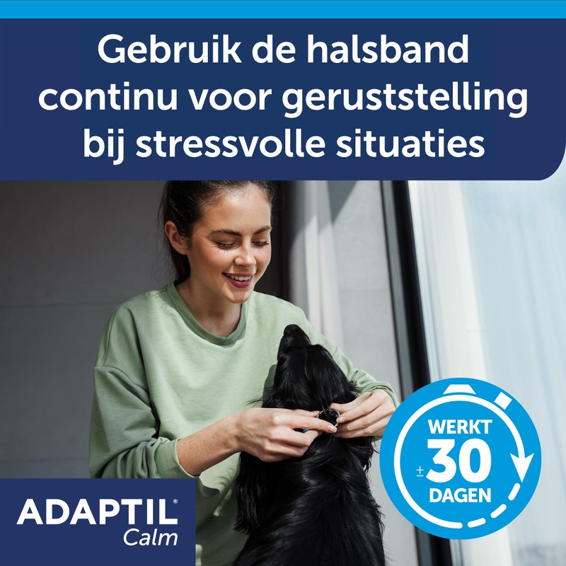 - The Adaptil Calm anti-stress collar contains the so-called dog appeasing pheromone, or mother pheromone for short. A fabric that your dog experiences less stress