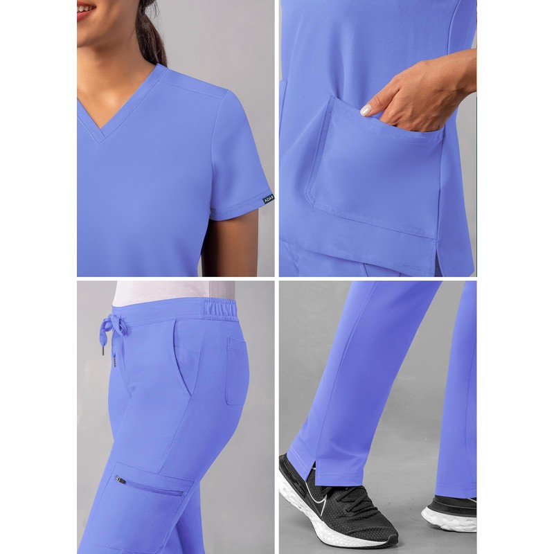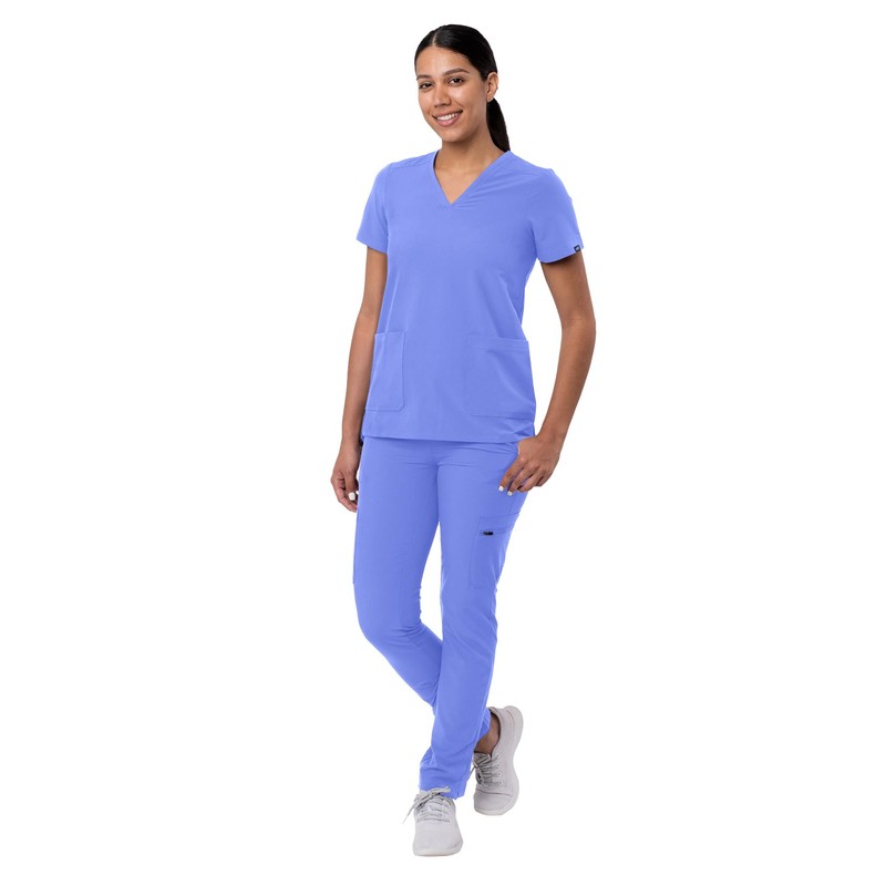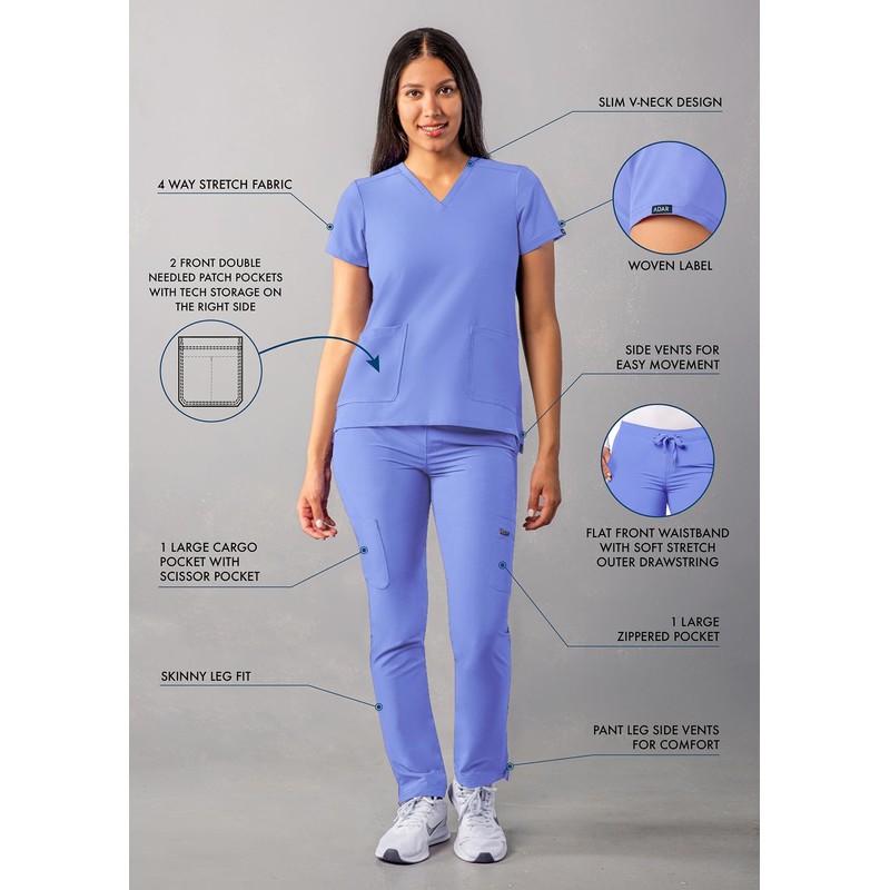 Adar Uniforms Addition Go-Basic Scrub Set For Women - Slim V-Neck Top & Skinny Cargo Pants - A9200 - Ceil Blue - S