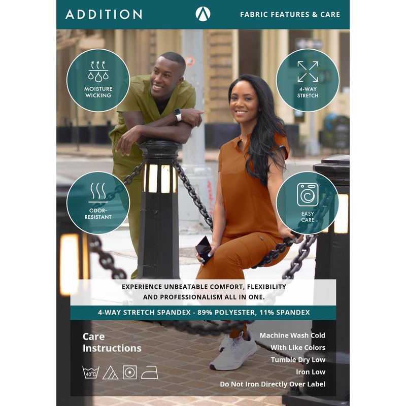 - MATERIAL: All Of The Scrubs In Our Addition Collection Are Made From A 4-way Stretch Lightweight Fabric Offering You A Drapey & Comfortable Fit. Our Soft But Thick Fabric Will Feel Pleasant On Your Skin While Being Fit For The Toughest Work Environments.