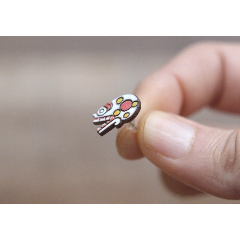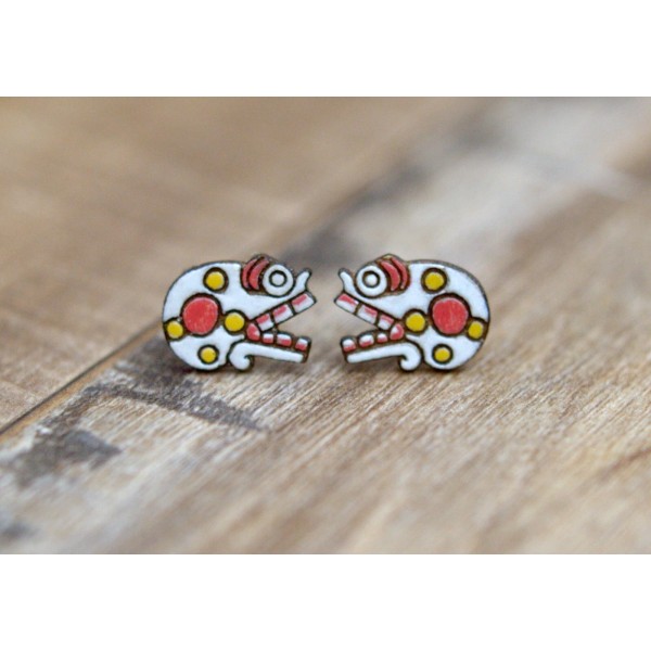 Aztec Mayan Jewelry crafted from wood, stud earrings set. This exquisite set is laser cut and hand painted with hypoallergenic metal studs for your confort. The design represents Miquiztli from the Aztec Calendar.