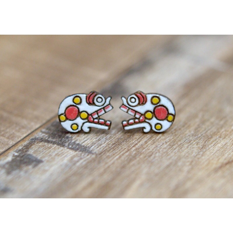 Adartse Arts Aztec Wooden Stud Earring Set | Miquiztli (Death) Borgia Codex, Skull Earrings