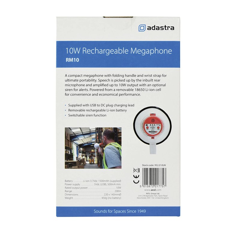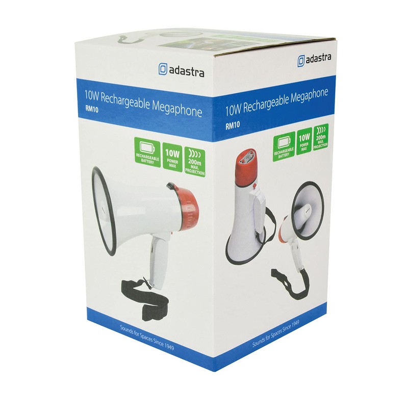 Adastra | Rechargable Megaphone With Foldable Handle & Wrist Strap 10W with Siren