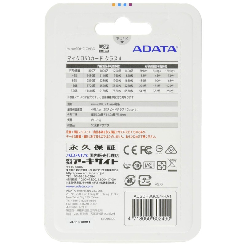 ADATA 8GB microSDHC Class 4 Memory Card with Adapter (AUSDH8GCL4-RA1)
