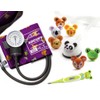 - "STETHOSCOPE: By changing pressure you can switch between audible frequencies: light pressure for low, funnel-specific frequencies; fixed pressure for high, membrane-specific frequencies. Distinctive chest piece with animal faces made of cast resin. The hose is soft and flexible and is made without phthalates. Frosted aluminium ear hooks. Cold-proof membrane rim for high patient comfort. Seven interchangeable clip-on animal faces included: Panda,Frog,Koala,Deer,Monkey,Tiger, Bear"