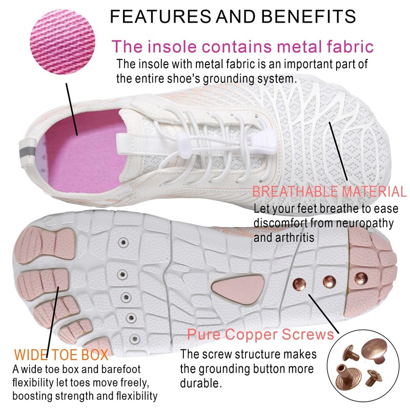 AddBili Barefoot Grounding Shoes for Men & Women with Solid Pure Copper Screws and Metal Fabric Insole, 2 Pairs Grounding Socks | Secure | Effective and | Comfortable- W39