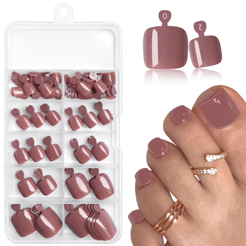 - Easy to use press on toenails brown: square glue on toe nail press ons brown with a natural look that are easy to wear or remove. Colored and pre-shaped toe press on nails brown make manicures easy and quick, with no UV curing required for a salon look in minutes. You can wear these toenail press ons brown toe nail tips with adhesive tabs directly and the classic color, high-gloss, brown fake toe nails will look stylish on your foots