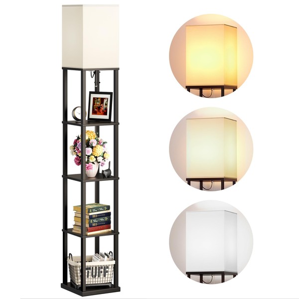 addlon Floor Lamps with Shelves, 5-Tier Modern Shelf Floor Lamp with 3CCT LED Bulb