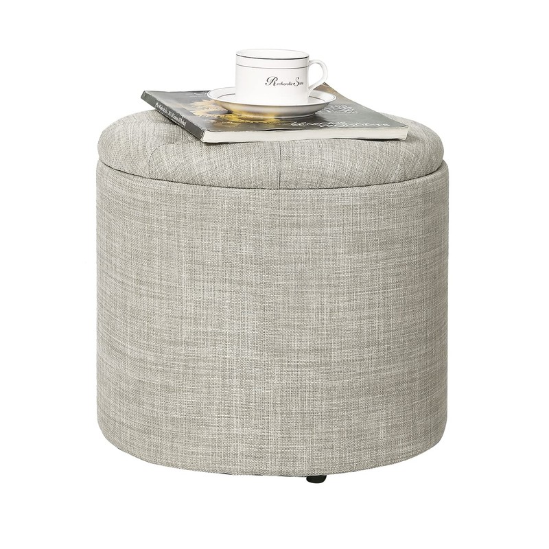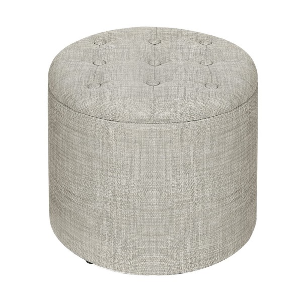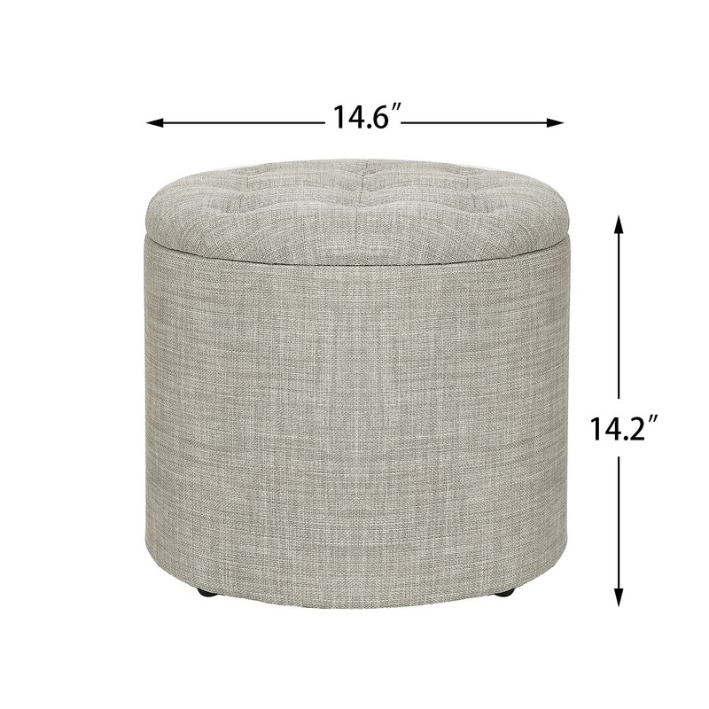 Adeco 14.6" Round Storage Tufted Ottomans with Removable Lid, Harbor Gray