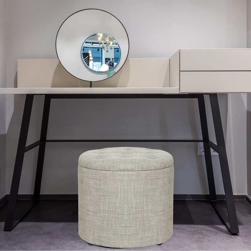 - ROUND OTTOMAN WITH STORAGE- Perfect round storage ottoman allows you to organize your small household items, books, kids’ toys and remotes etc.