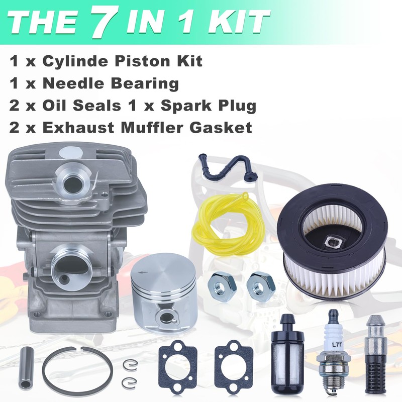 - 【MS291 Cylinder & Piston Kit】1 x Cylinder Piston Kit(Old Style), 1 x Air Filter Screen Model, 1 x Spark Plug, 1 x Oil Filter, 2 x Carburetor Gasket, 1 x Fuel Pipe, 1 x Fuel Line(2.5x5mm), 1 x Fuel Filter, 2 x Bar Nut.