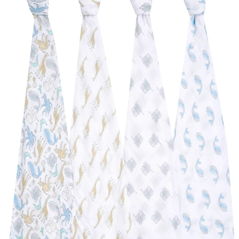 aden + anais Swaddle Blanket, Boutique Muslin Blankets for Girls & Boys, Baby Receiving Swaddles, Ideal Newborn & Infant Swaddling Set, 4 Pack, Natural History
